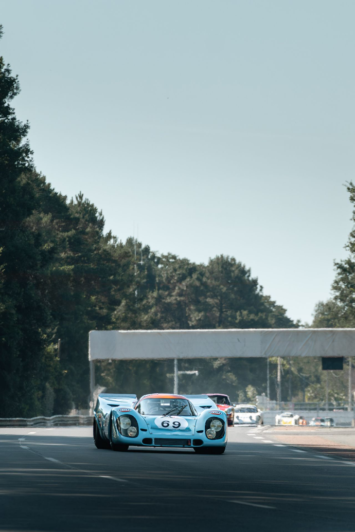 Et même effet que pour le plateau précédent, il m’en manque de me décrocher la mâchoire tant le plateau est beau. Porsche 935 K3, 930 Turbo (une vraie !!), 911 RSR, 906 et là précédent l’armada de 911, elle apparaît, une Porsche 917k couleur “Gulf”. Si le Groupe C m’avait mis une claque et le début du plateau Porsche aussi, voir rouler pour la première fois cette légende du Mans, qui berce mes rêves depuis le visionnage du film “Le Mans”, c’est autre chose.